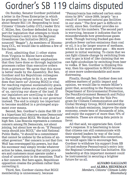 This letter, from members Al Galliani and Abra Heineman, appeared in the Press Enterprise on May 20. It responds to the letter from Sen. Gordner below, which appeared in the PE on May 16 in response to our Letter #4.