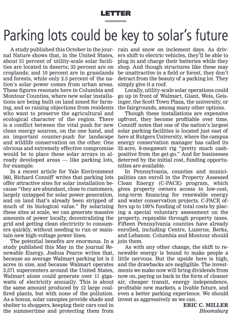 This letter, by group leader Eric C. Miller, appeared in the Bloomsburg Press-Enterprise on Friday, December 10. More on C-PACE here.
